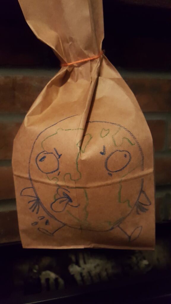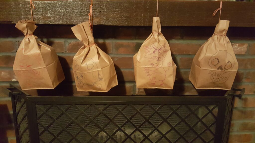 - Hang them behind the fire grate, but high enough to be visible, if possible, to show that they are destined for burning and judgment. (Rather than the way we usually hang stockings for Christmas, where the stockings sit on the safe, exterior side of the fire grate.) If your fire grate doesn’t have space above and behind, where the piñatas can be both visible and in the line of fire, then you’ll have to choose between visibility and symbolism. Do whatever makes sense in your context. (And be safe of course with wherever you put them while you actually use the fireplace, if you do so during this season.)