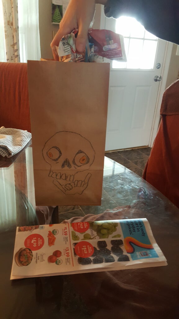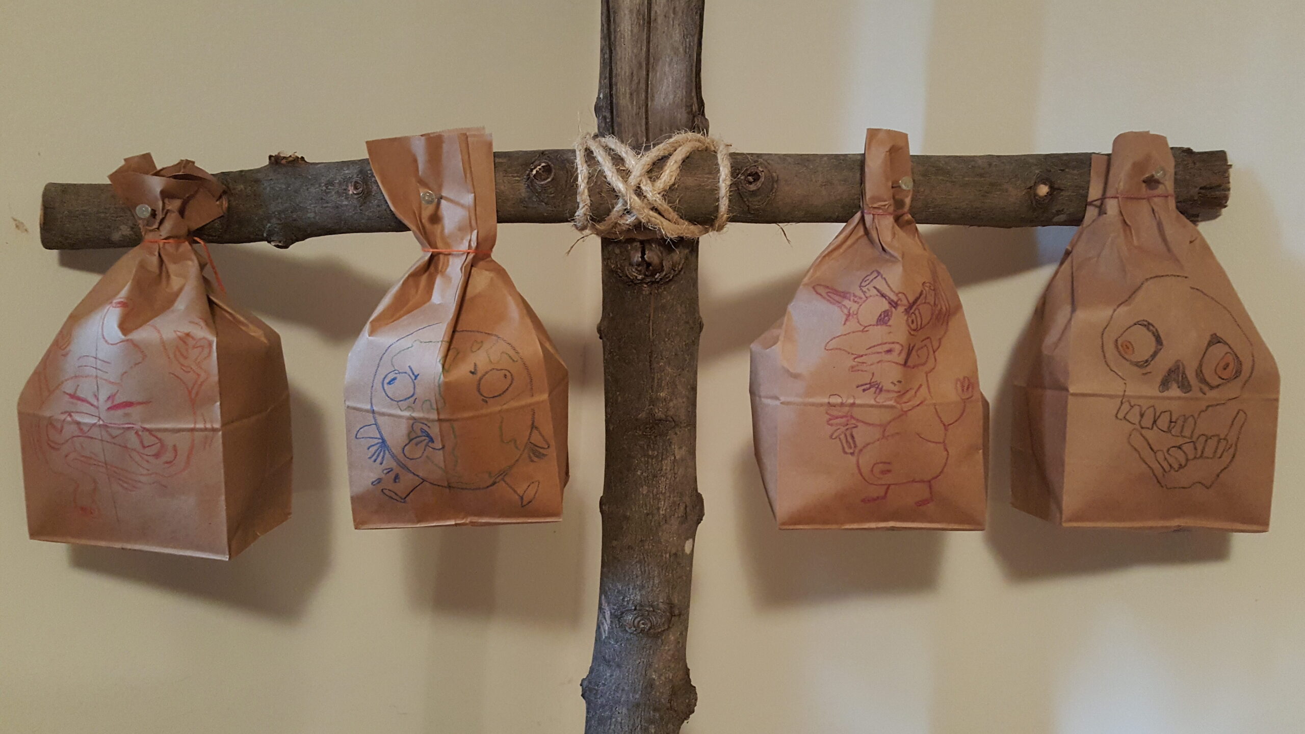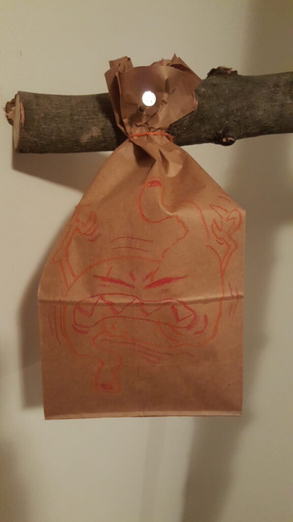 - Piñatas can be made from small paper bags stuffed with newspaper or from tissue paper wrapped around stuffing. (6″ paper bags such as you’d get from the grocery store checkout work well but they will be sturdier but harder to knock down from the cross on Good Friday unless you perforate them first around the nail.)