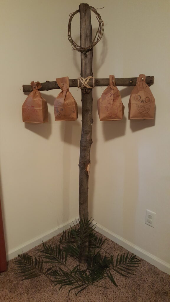 - Maundy Thursday: Nail the Death piñata to the cross.