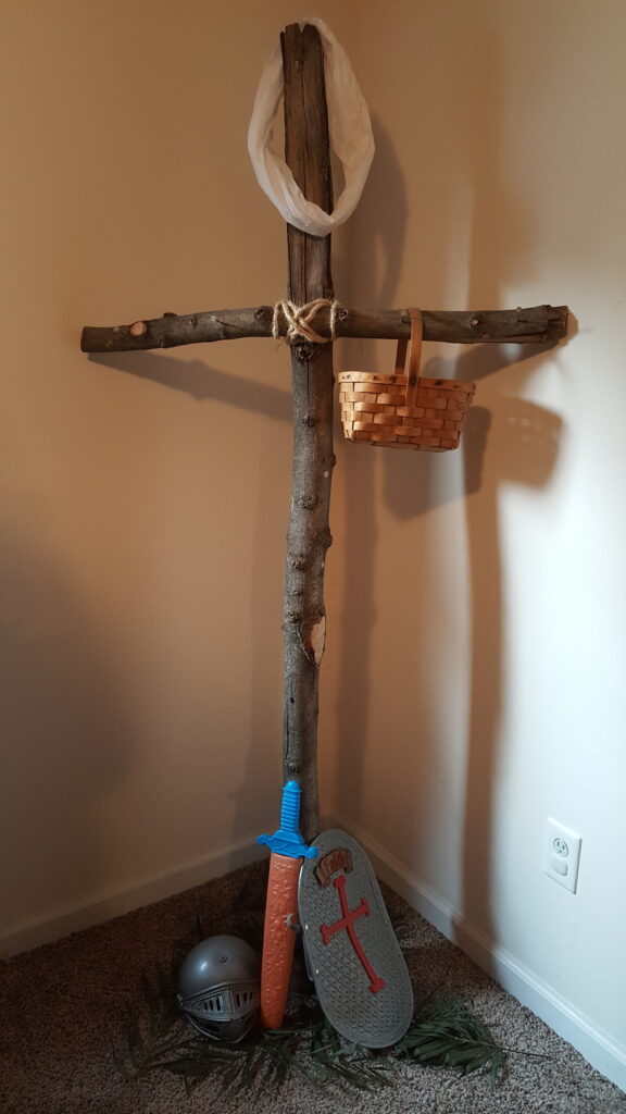 - Kids could also leave their swords/armor at the foot of the cross today (or on Holy Saturday the night before).
